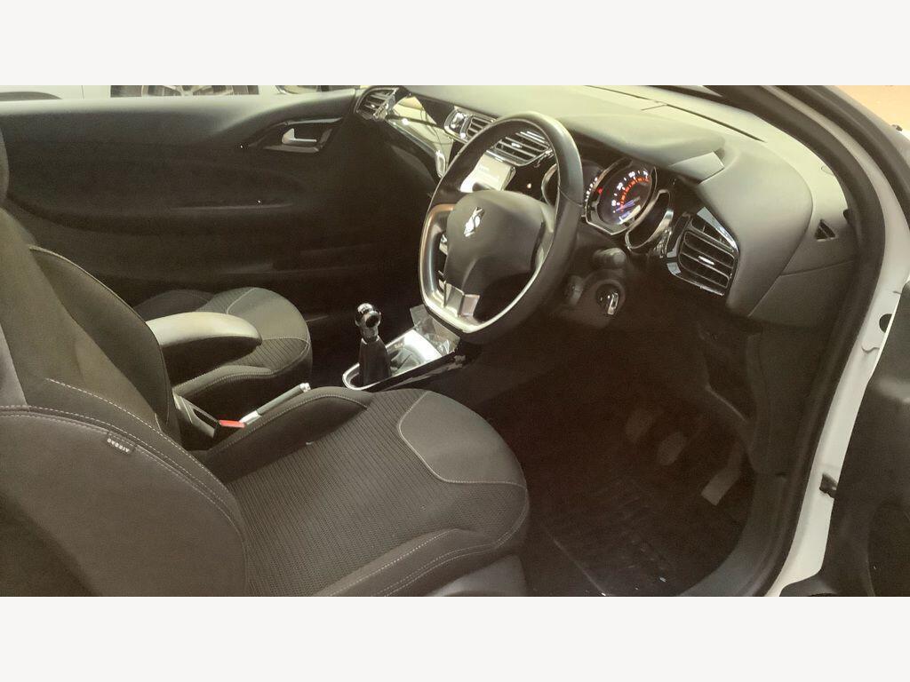 12 Volt Socket in Cabin, 17in Alloy Wheels - Aphrodite Black Diamond-Cut, 3D LED Rear Lights, 7in Touchscreen, ABS - Anti-lock Braking System with Electronic Brakeforce Distribution and Emergency Braking Assistance, Alarm, Automatic Air Conditioning, Black Panel On-Off Instrument Lighting, Bluetooth Handsfree and Media Streaming with 1A USB Socket, Boot Lighting, Chrome DS Wings Grille, Chrome Door Handles, Chrome Rear Bumper Insert, Chrome Side Rubbing Strips, Coloured Plip Key Insert, Compressor with Puncture Repair Kit, Cruise Control with Speed Limiter, DAB Digital Radio, DS Connect Box Emergency and Assistance System, Dark Tinted Rear Windows, Driver-Front Passenger-Front Lateral and Curtain Airbags, Drivers Unfastened Seat Belt Warning, Drivers and Passengers Sunvisor with Courtesy Mirror, ESC - Electronic Stability Control, Electrically Adjustable Door Mirrors, Exterior Temperature Display, Five 3-Point Inertia Reel Seat Belts, Front Armrest, Front Courtesy and Reading Lights, Front Door Pockets with Bottle Holder, Front Electric Windows, Front Seat Back Pockets, Front Seat Belt Pretensioners, GEI - Gear Efficiency Indicator, Gloss Black Centre Console and Interior Door Handle Surrounds, Gloss Black Gear Knob, Height and Reach Adjustable Steering Wheel, Height-Adjustable Drivers Seat, Height-Adjustable Halogen Headlights, Immobiliser, Integrated Air Freshener, Interior Mood Lighting, LED Daytime Running Lights, LED Front Fog Lights, Lashing Eyes in the Boot, Leather Handbrake with Chrome Insert, Leather Steering Wheel, Locking Wheel Bolts, Mirror Screen with Mirror Link and Car Play, Multi-Function On-Board Trip Computer, RDS Radio with 6 Speakers and AUX Socket, Rear Split-Folding Seats, Remote Central Control Locking with Deadlocks, Rev Counter, Roof Colour Painted Door Mirrors, Satin Chrome Door Sill Protectors, Satin Chrome Steering Wheel Inserts, Single Chrome Exhaust Tailpipe, Soft-Touch Upper Dashboard, Sport Suspension, Steering Wheel Mounted Controls, Tungsten Dashboard Strip, Two Rear ISOFIX Mounting Points, Tyre Pressure Monitor, Variable-Assistance Power Steering, eMyWay Satellite Navigation