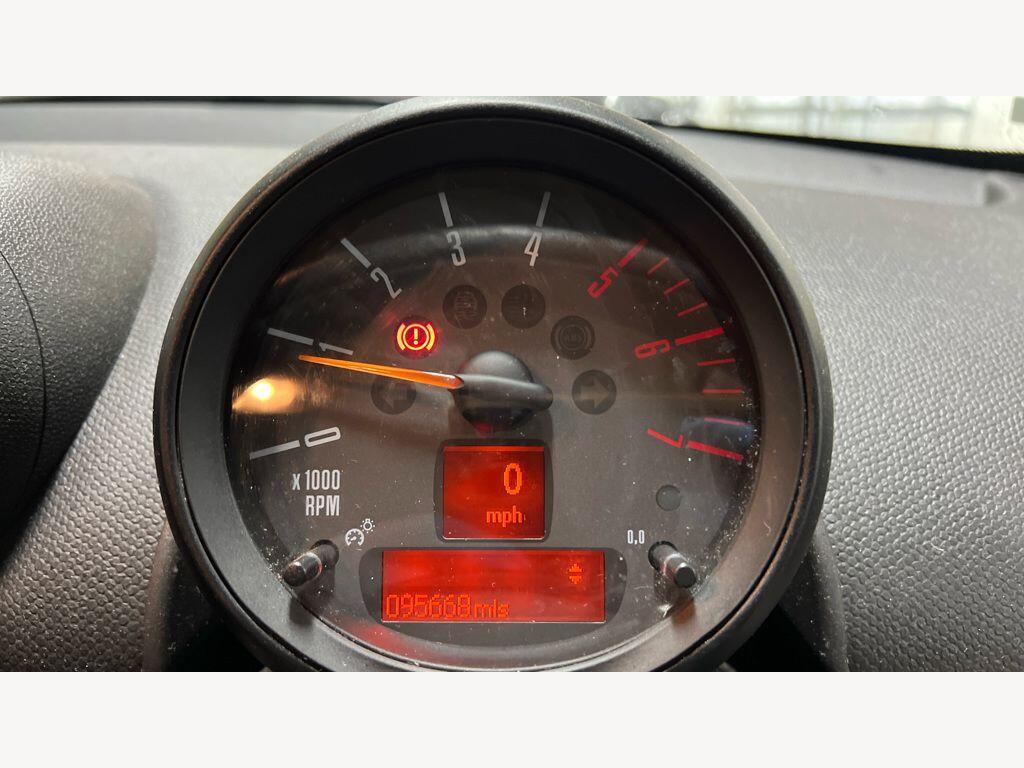 Towbar with Removable Ball Head, Flat Load Floor, White Direction Indicators Lights, Interior World - Carbon Black, Roof and Mirror Caps - Black, Cosmos Cloth - Carbon Black, 16in Alloy Wheels - 5-Star Single Spoke Light, 3rd Brake Light, ASC+T - Automatic Stability Control and Traction, Air Conditioning - Manual, Airbags - Driver, Airbags - Front Passenger, Airbags - Front Passenger with Deactivation Switch, Airbags - Front Side, Airbags - Head, Alarm - Thatcham CAT1, Anti-Lock Braking System - ABS, Aux-In Connection, Basic Bluetooth Function with USB Audio, Bike Rack Preparation at Rear, Brake Assist, Brake Pad Wear Indicator, CBC - Cornering Brake Control, Car Jack, Central Bass Hi-Fi System, Central Locking - Activated At 10mph, Central Locking - Remote, Centre Rail, Child Seat ISOFIX Attachment, Cooled Glovebox, Cupholders - Two in Front, DAB Tuner, Door Handles - Chrome Plated, Door Handles - Interior - Chrome Plated, Door Mirrors - Electrically Adjustable and Heated, Dynamic Stability Control - DSC, EBD - Electronic Brake-Force Distribution, Electric Windows - One Touch Up and Down Front and Rear, Electronic Power Steering, Embellisher at Bottom Edge of All Windows - Chrome Plated, Frame Chrome-Plated Radiator-Grille Bars Silver, Grab Handles, Halogen Lights for Low Beam and High Beam Headlights, Headlight - Beam-Throw Control Electrical with Manual Adjustment, Headlights - Chrome Bezels, Headlights - Follow Me Home, Headlining - Beige, Heated Front Windscreen Washer Jets, Hill Assist, Interior lights - Integrated into Centre Front Headliner including Two Reading Lights, Lashing Eyes in Luggage Compartment, MINI Mobility System, MINIMALISM Fuel Saving Technology, Microfilter, Mirror Caps in Body Colour, PDC - Park Distance Control - Rear, Radio BOOST CD, Roof Rails - Silver, Roof in Body Colour, Seats - 40:20:40 Split Rear Backrests, Seats - Height Adjustable Drivers, Second Radio Remote Key, Security Locking Wheel Bolts, Side Scuttles with Integrated Indicators, Steering Column Height and Length Adjustment, Sun Visors with Integrated Vanity Mirrors on Drivers and Passengers Sides, TPWS - Tyre Pressure Warning System